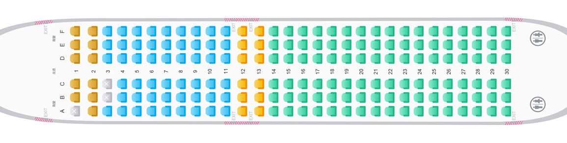 12至13排 第18至19排、29排、30排A座(321机型) |